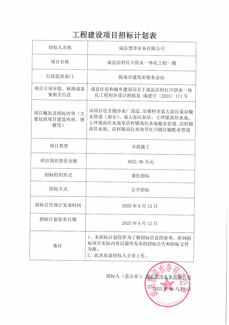 工程建設(shè)項目招標(biāo)計劃表成縣店村紅川供水一體化工程一期.pdf
