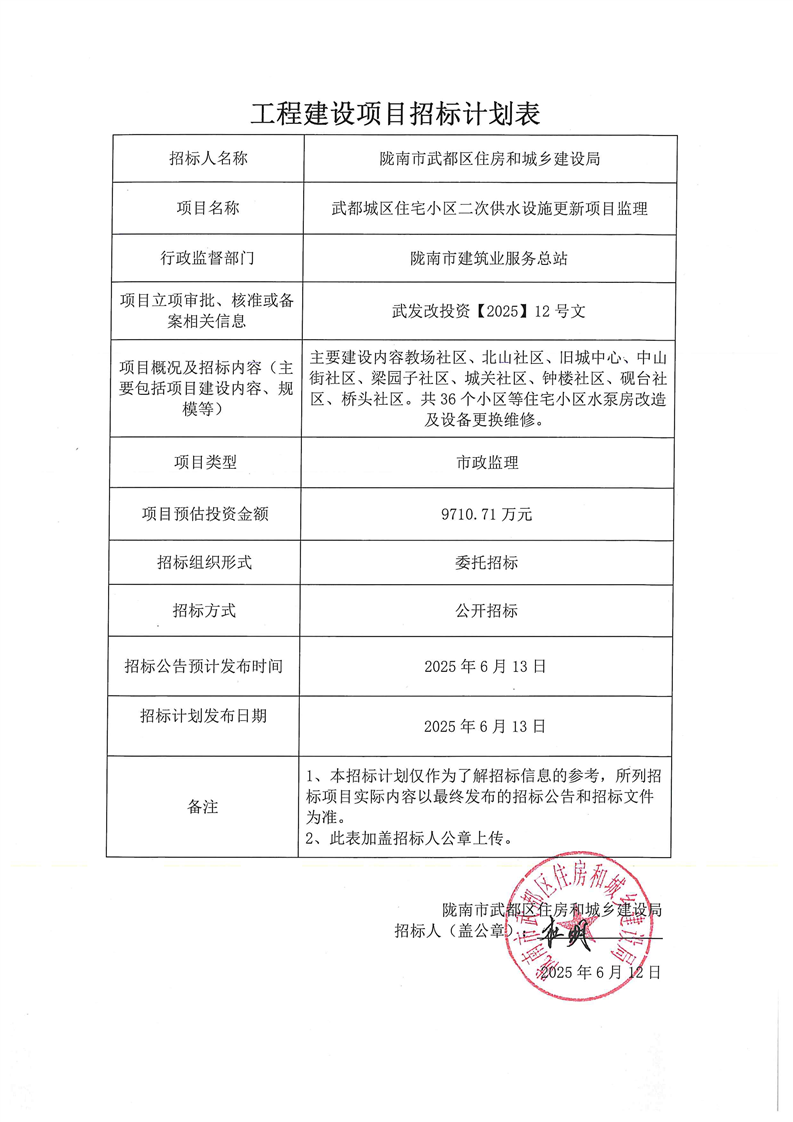 武都城區(qū)住宅小區(qū)二次供水設(shè)施更新項目監(jiān)理