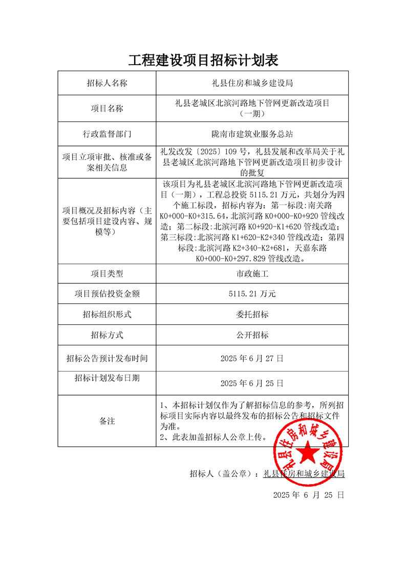 禮縣老城區(qū)北濱河路地下管網更新改造項目(一期)