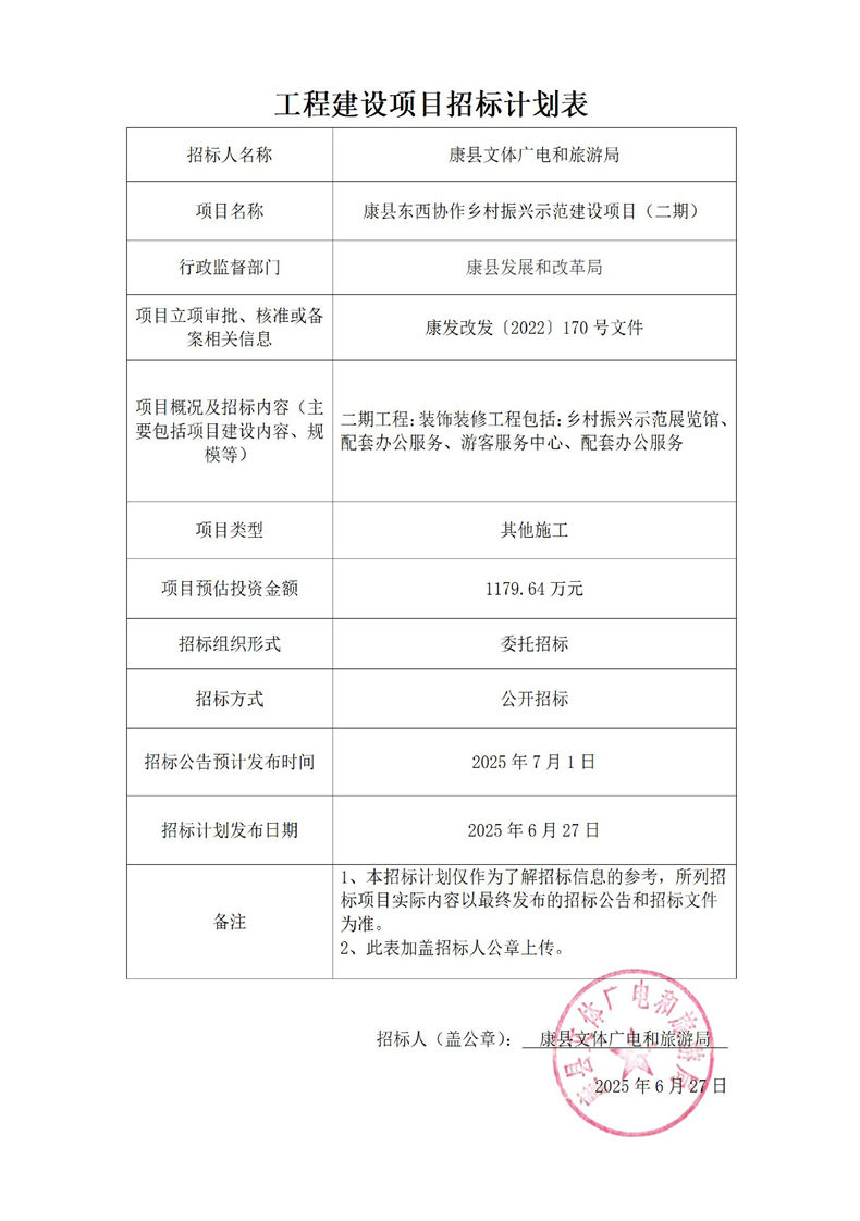 康縣東西協(xié)作鄉(xiāng)村振興示范建設(shè)項目(二期)