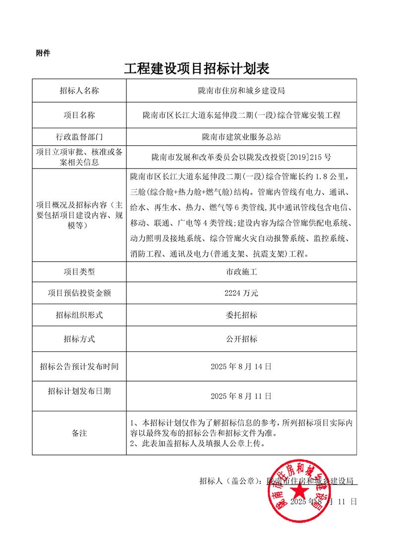 隴南市區(qū)長江大道東延伸段二期(一段)綜合管廊安裝工程工程建設(shè)項目招標(biāo)計劃表.pdf