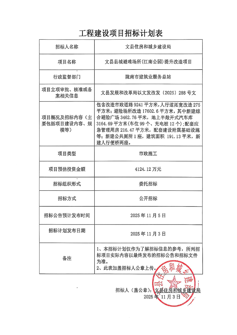 文縣縣城避難場(chǎng)所(江南公園)提升改造項(xiàng)目
