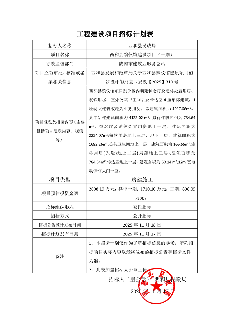 西和縣民政局工程建設(shè)項目招標(biāo)計劃表.pdf