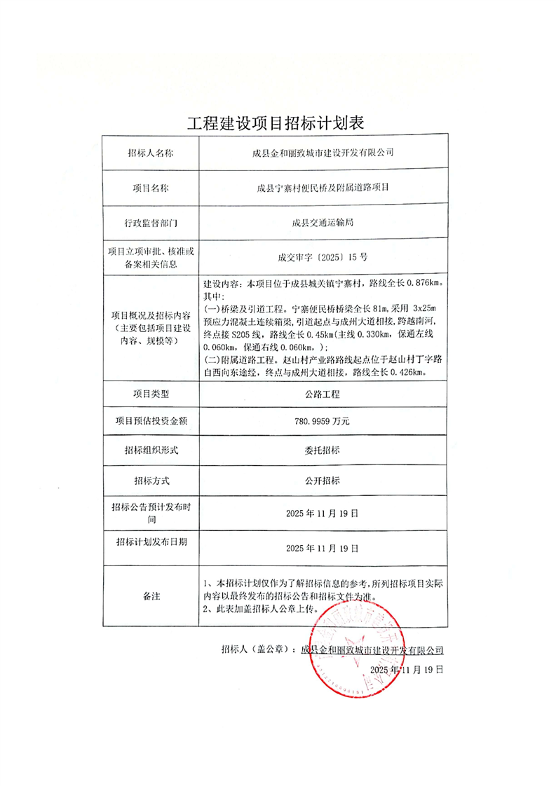 成縣寧寨村便民橋及附屬道路項目