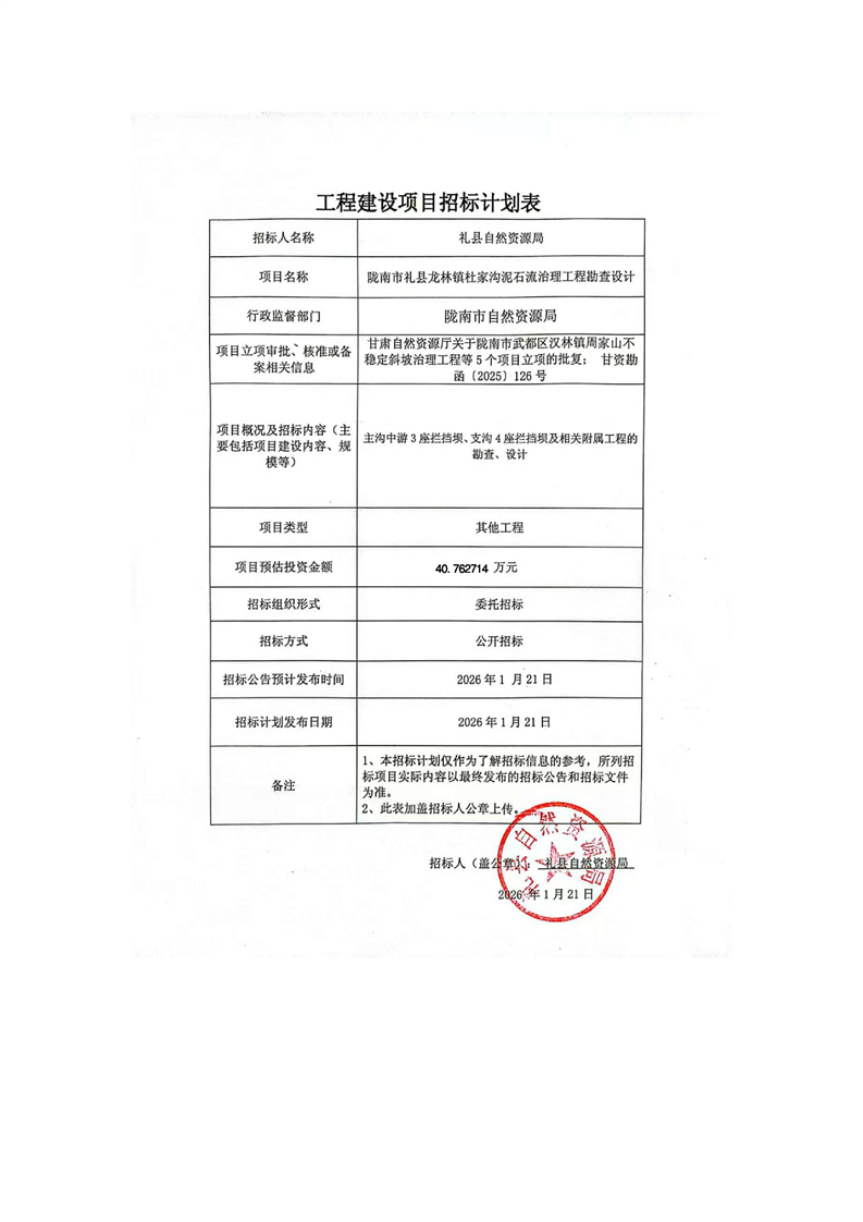 隴南市禮縣龍林鎮(zhèn)杜家溝泥石流治理工程勘查設(shè)計