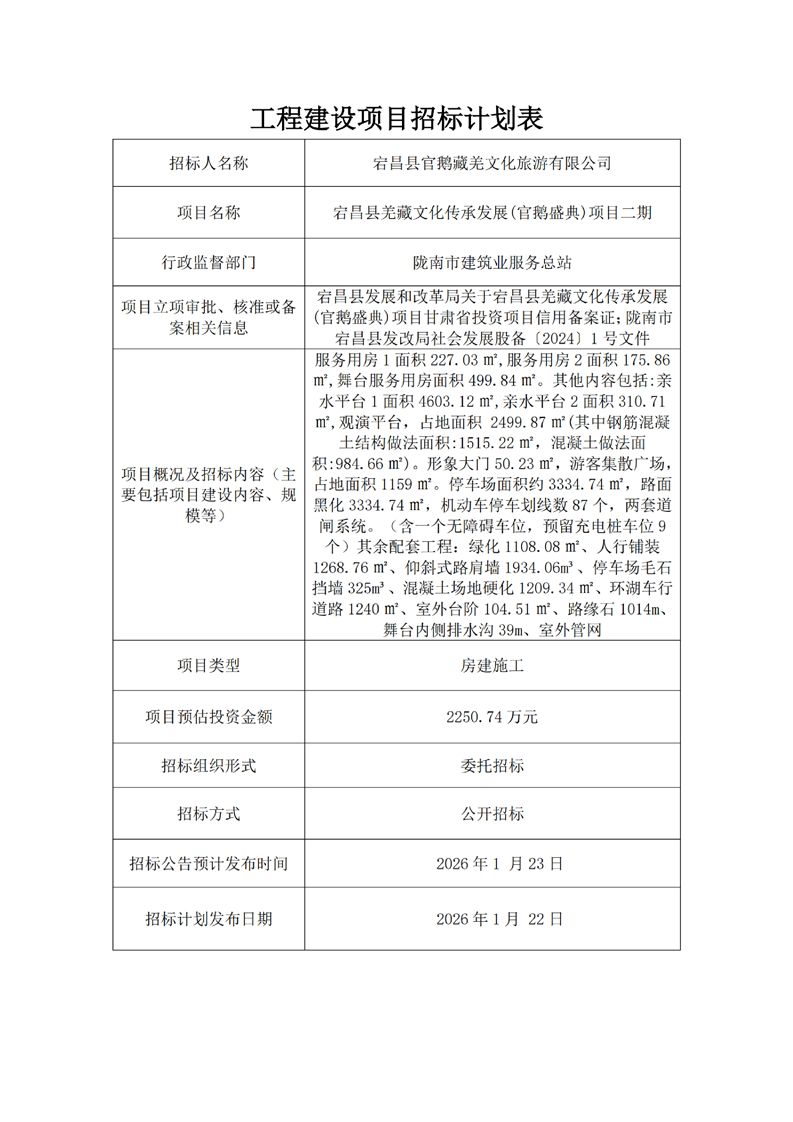宕昌縣羌藏文化傳承發(fā)展(官鵝盛典)項(xiàng)目二期