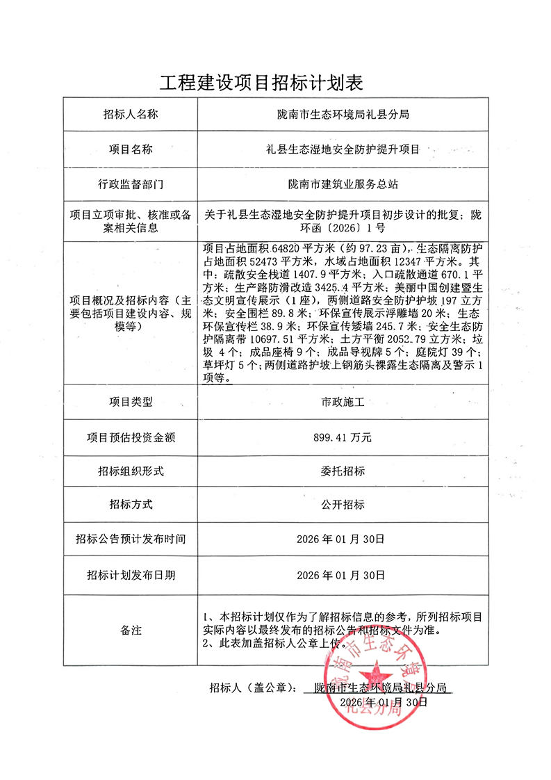 禮縣生態(tài)濕地安全防護(hù)提升項(xiàng)目