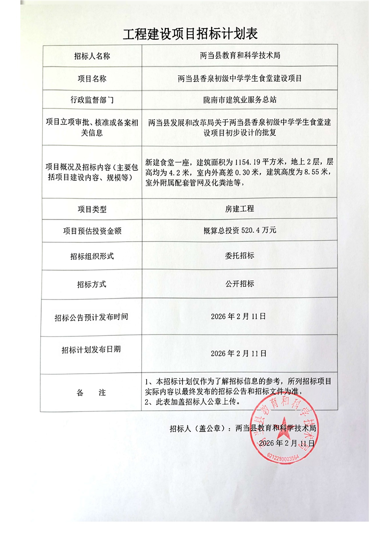 兩當縣香泉初級中學(xué)學(xué)生食堂建設(shè)項目