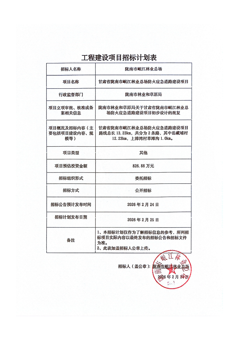 甘肅省隴南市岷江林業(yè)總場防火應(yīng)急道路建設(shè)項目