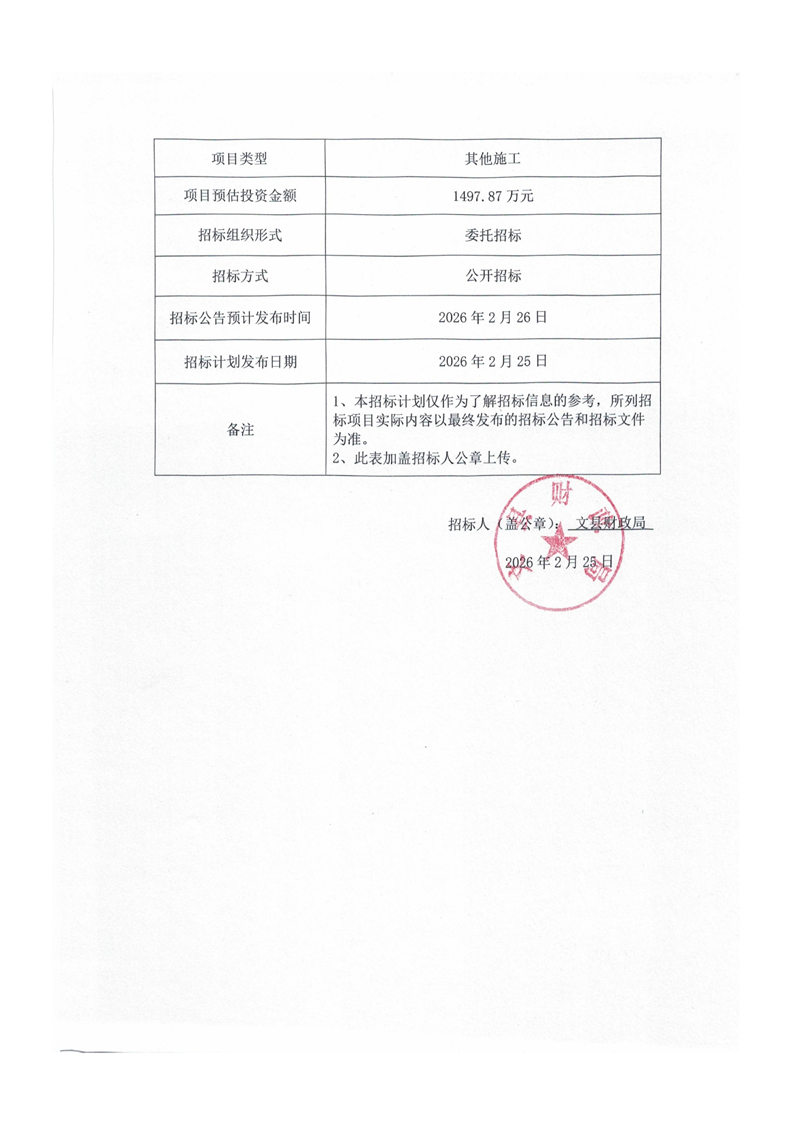 文縣財政局2026年第一批農(nóng)村公益事業(yè)建設(shè)財政獎補項目