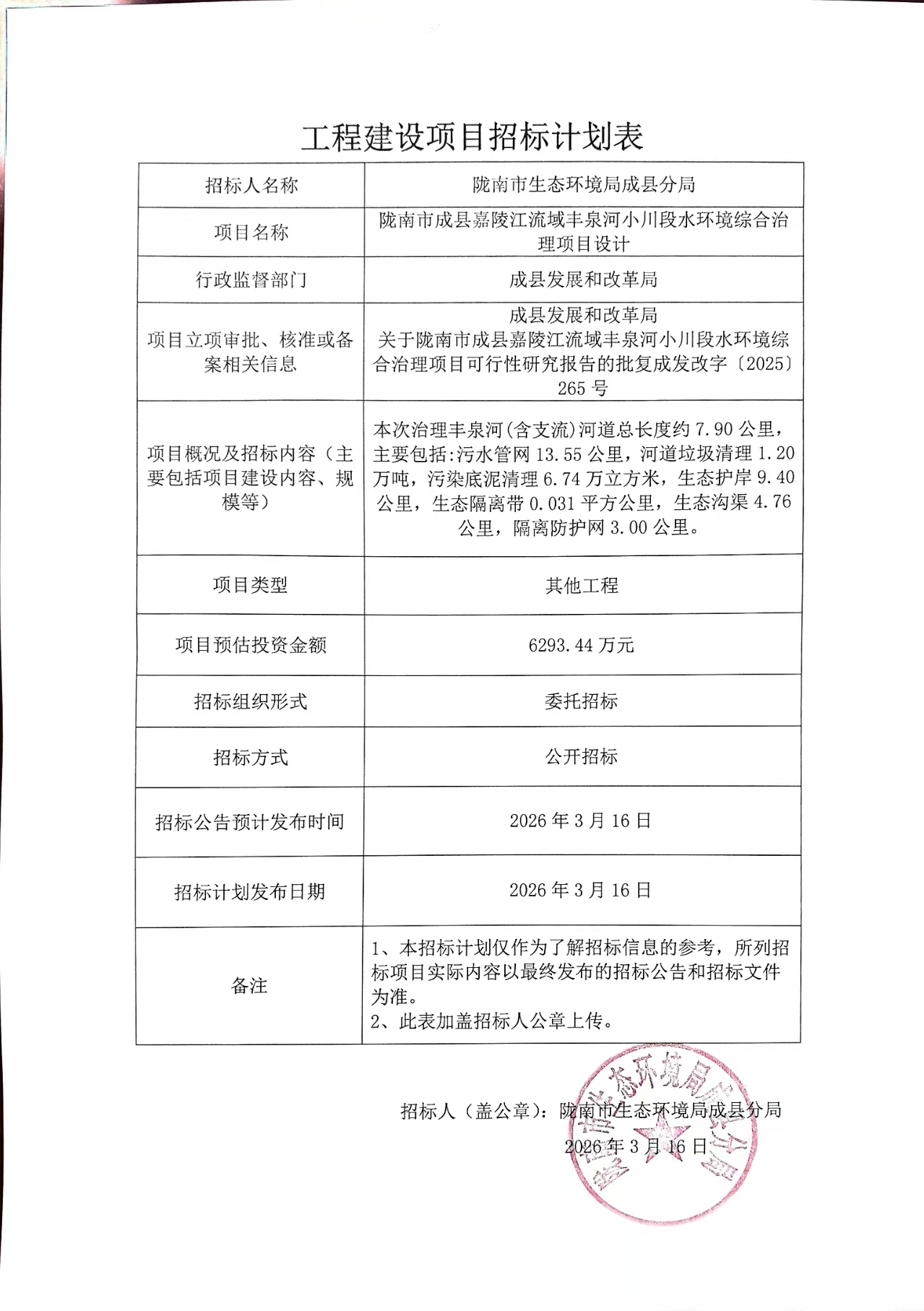 隴南市成縣嘉陵江流域豐泉河小川段水環(huán)境綜合治理項(xiàng)目設(shè)計(jì)