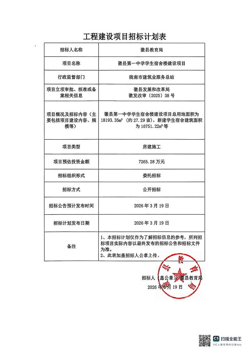 徽縣第一中學(xué)學(xué)生宿舍樓建設(shè)項目