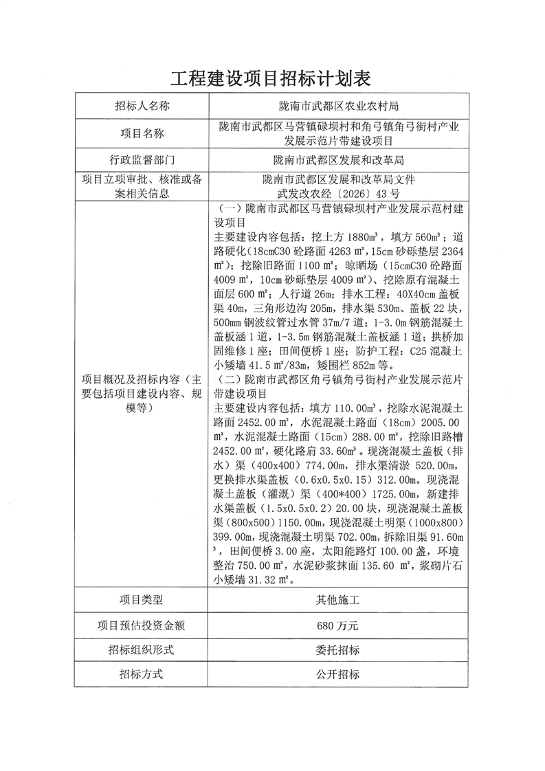 隴南市武都區(qū)馬營鎮(zhèn)碌壩村和角弓鎮(zhèn)角弓街村產(chǎn)業(yè)發(fā)展示范片帶建設(shè)項目