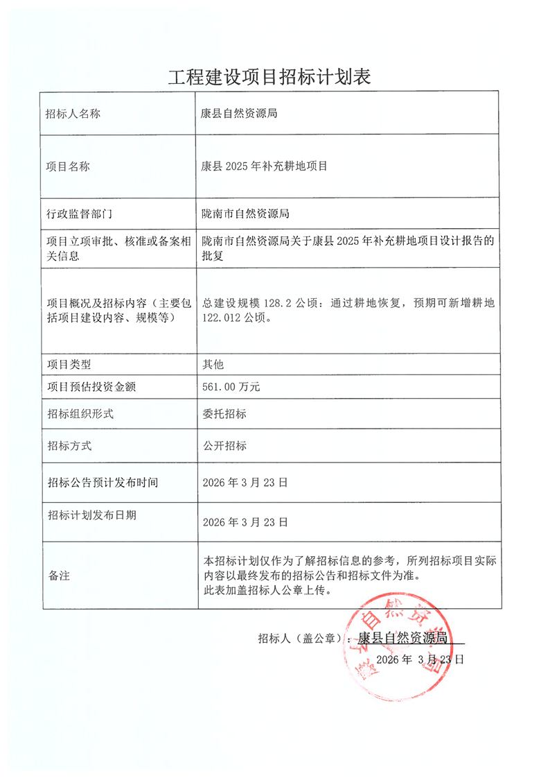康縣2025年補充耕地項目