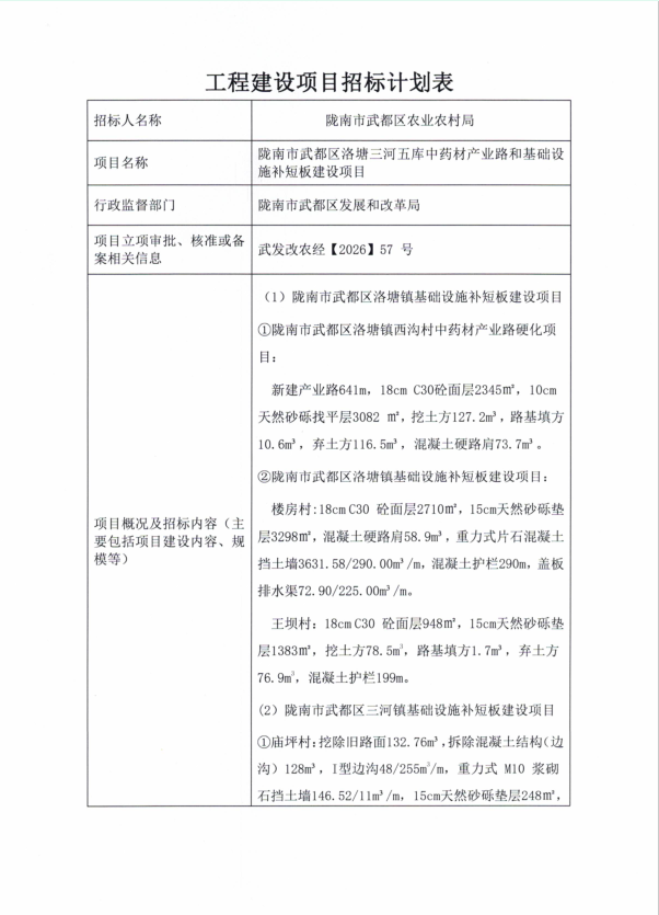 隴南市武都區(qū)洛塘三河五庫中藥材產(chǎn)業(yè)路和基礎(chǔ)設(shè)施補(bǔ)短板建設(shè)項(xiàng)目