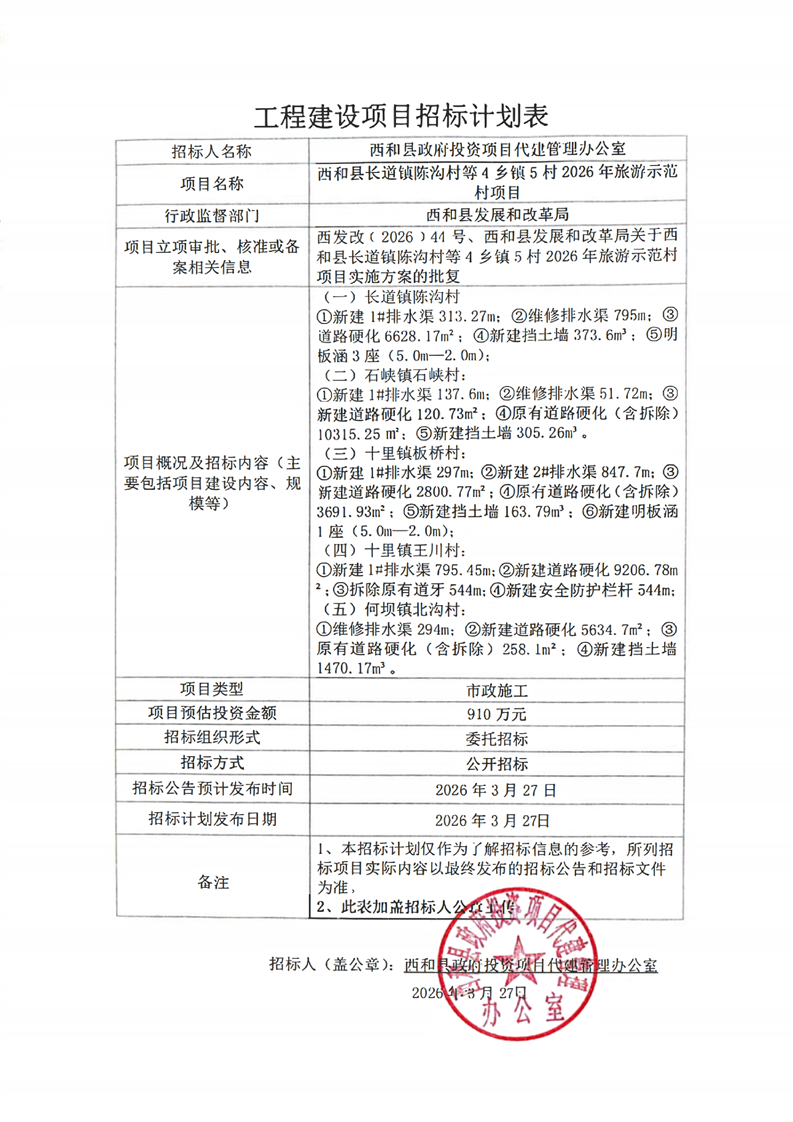 西和縣長道鎮(zhèn)陳溝村等4鄉(xiāng)鎮(zhèn)5村2026年旅游示范村項(xiàng)目