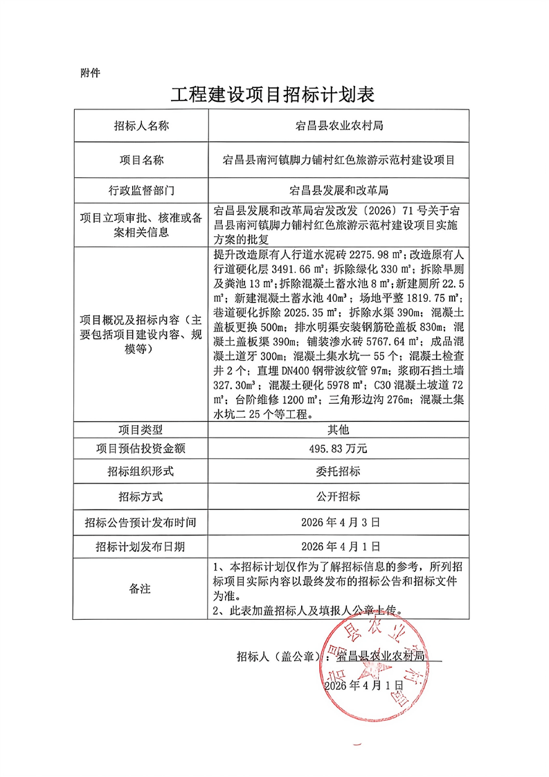 宕昌縣南河鎮(zhèn)腳力鋪村紅色旅游示范村建設(shè)項目