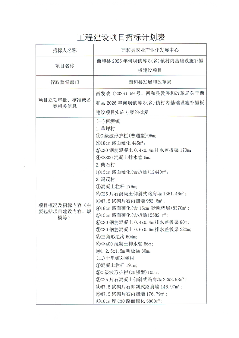 西和縣2026年何壩鎮(zhèn)等8(鄉(xiāng))鎮(zhèn)村內(nèi)基礎(chǔ)設(shè)施補短板建設(shè)項目