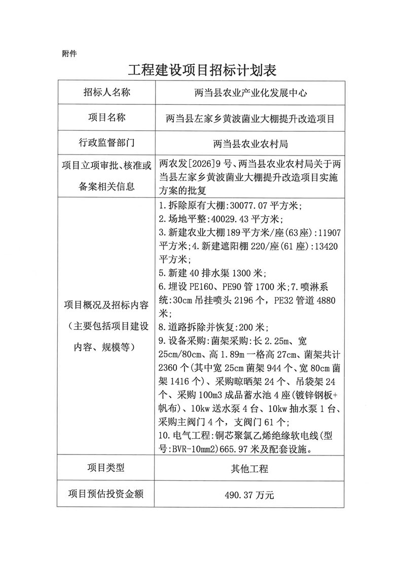 兩當(dāng)縣左家鄉(xiāng)黃波菌業(yè)大棚提升改造項目
