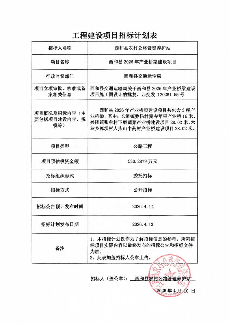西和縣2026年產(chǎn)業(yè)橋梁建設(shè)項目